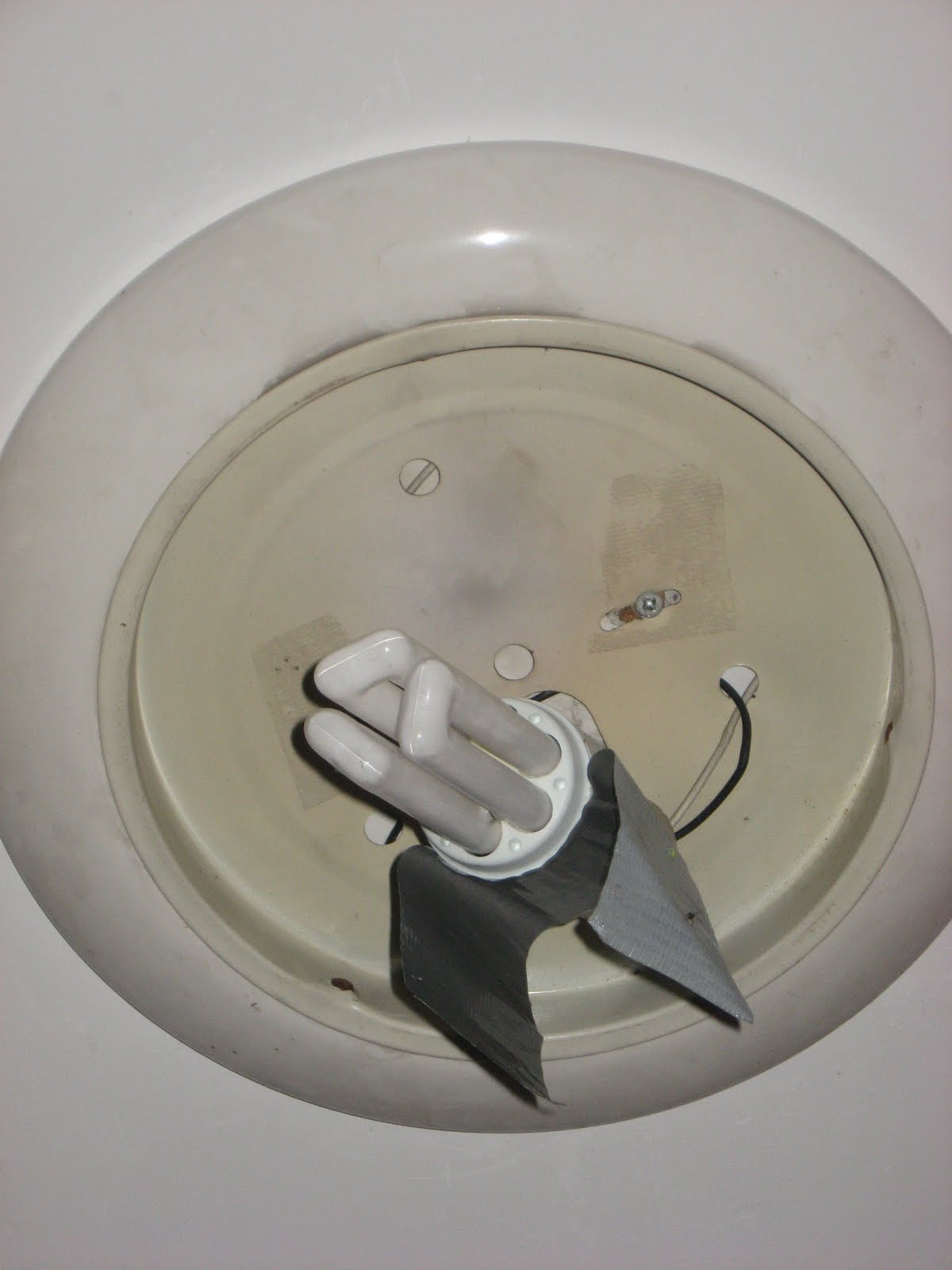 I also have a small wish list for my apartment. The first is for the lighting. I'd really like bright lighting, but the brighter bulb does not fit into the light fixture, so I have to use duck tape to keep the light from putting too much weight on the fixture. (duck tape has a limited life in this humidity.)